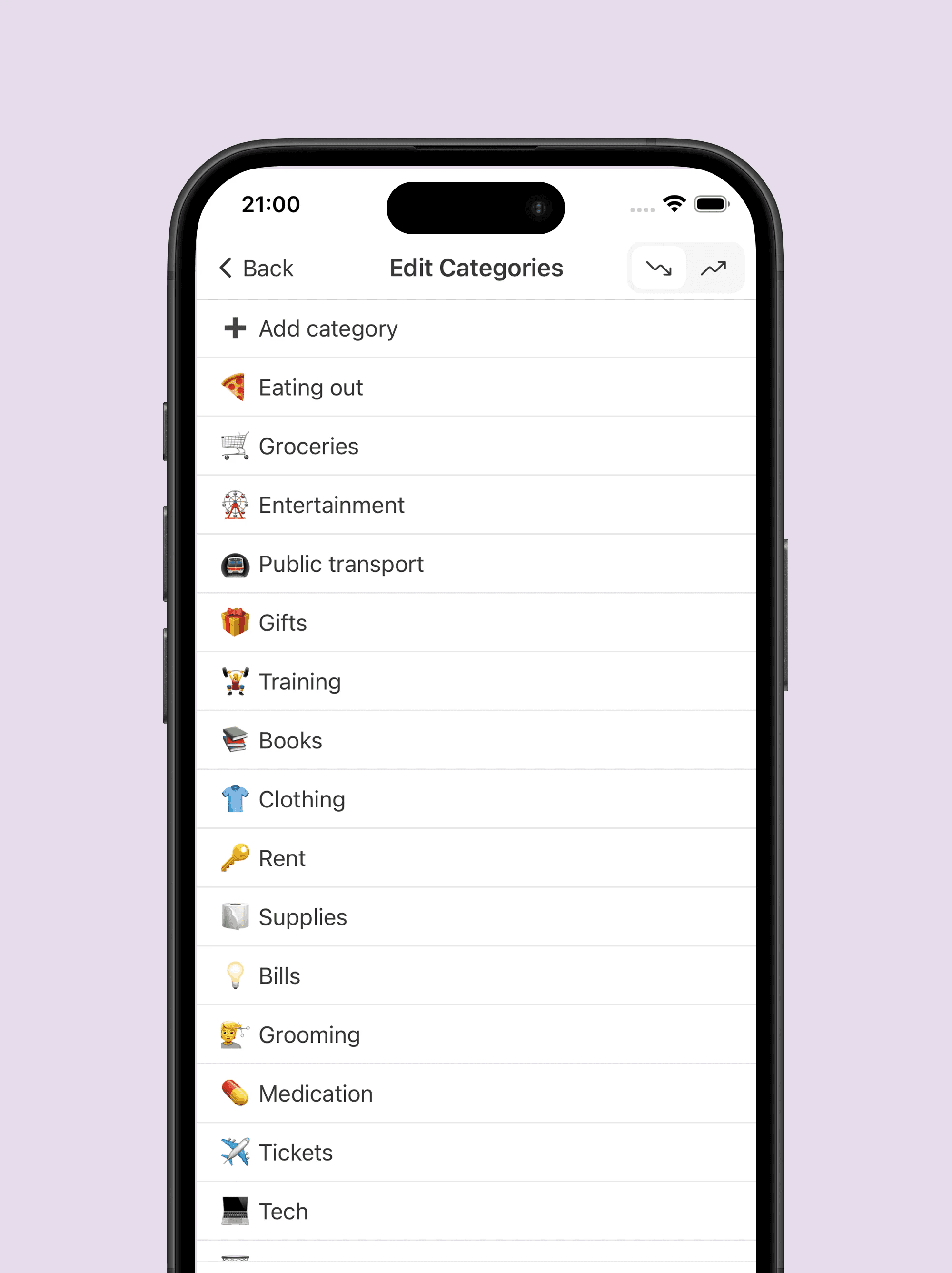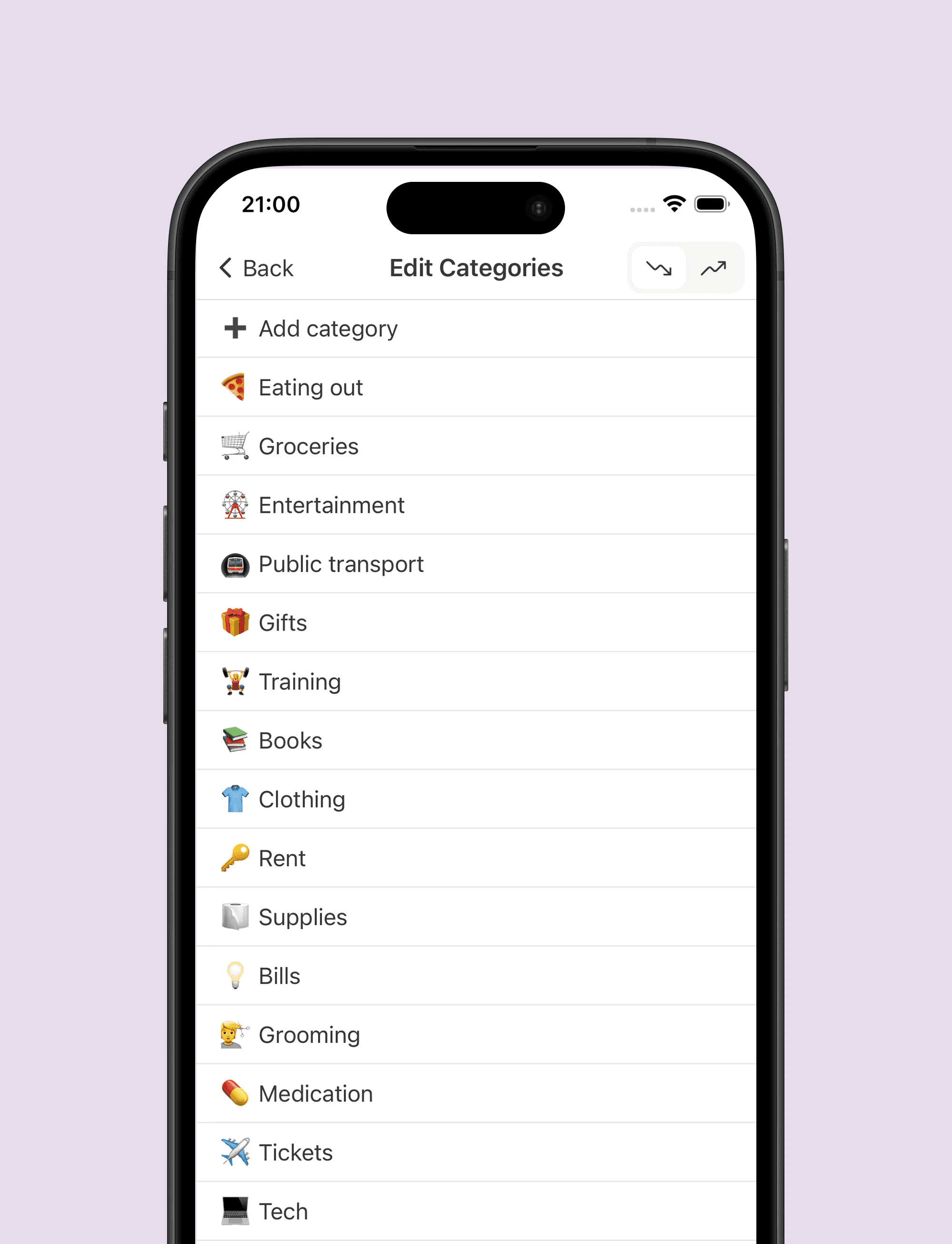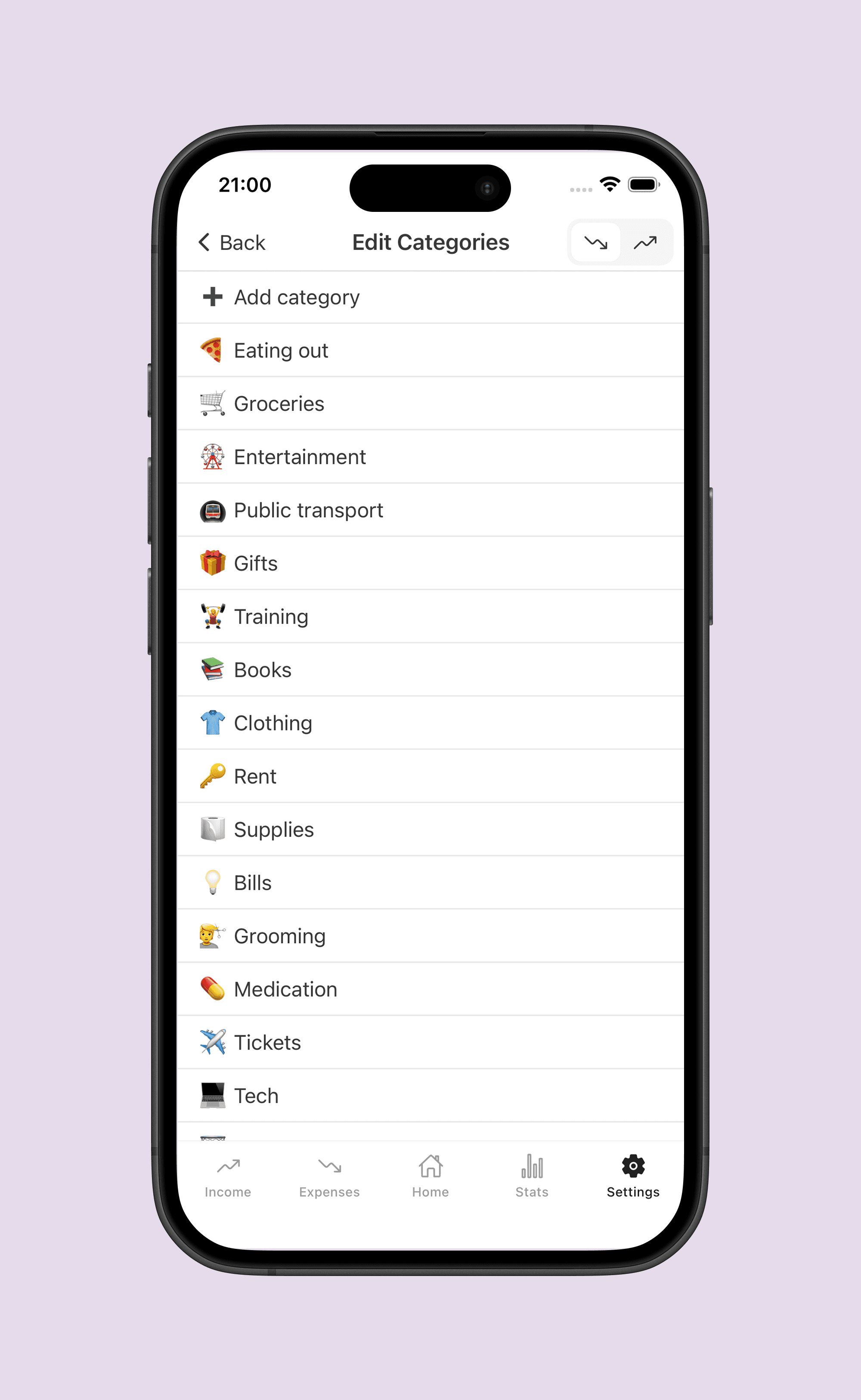 Add, edit, delete categories anytime