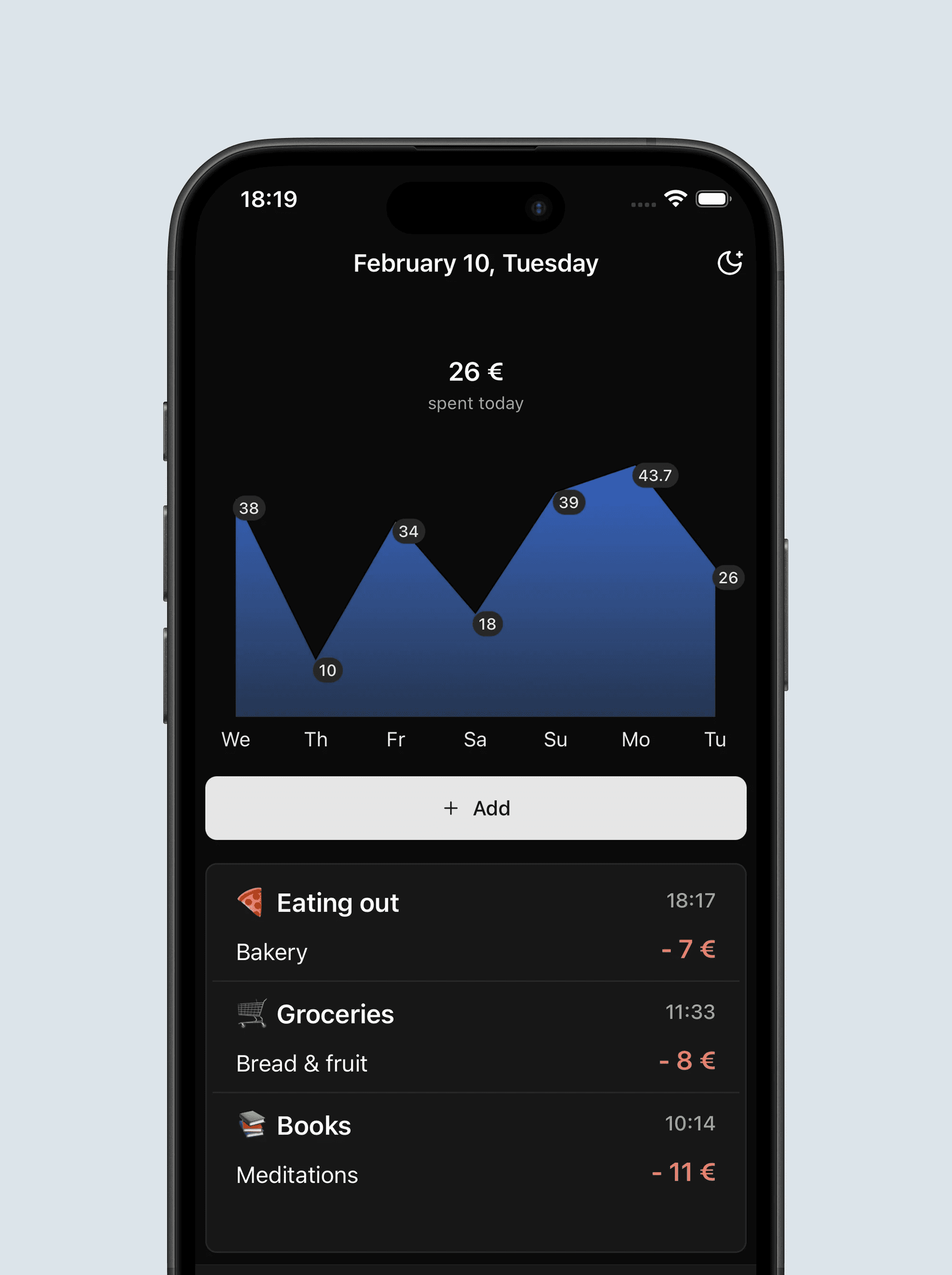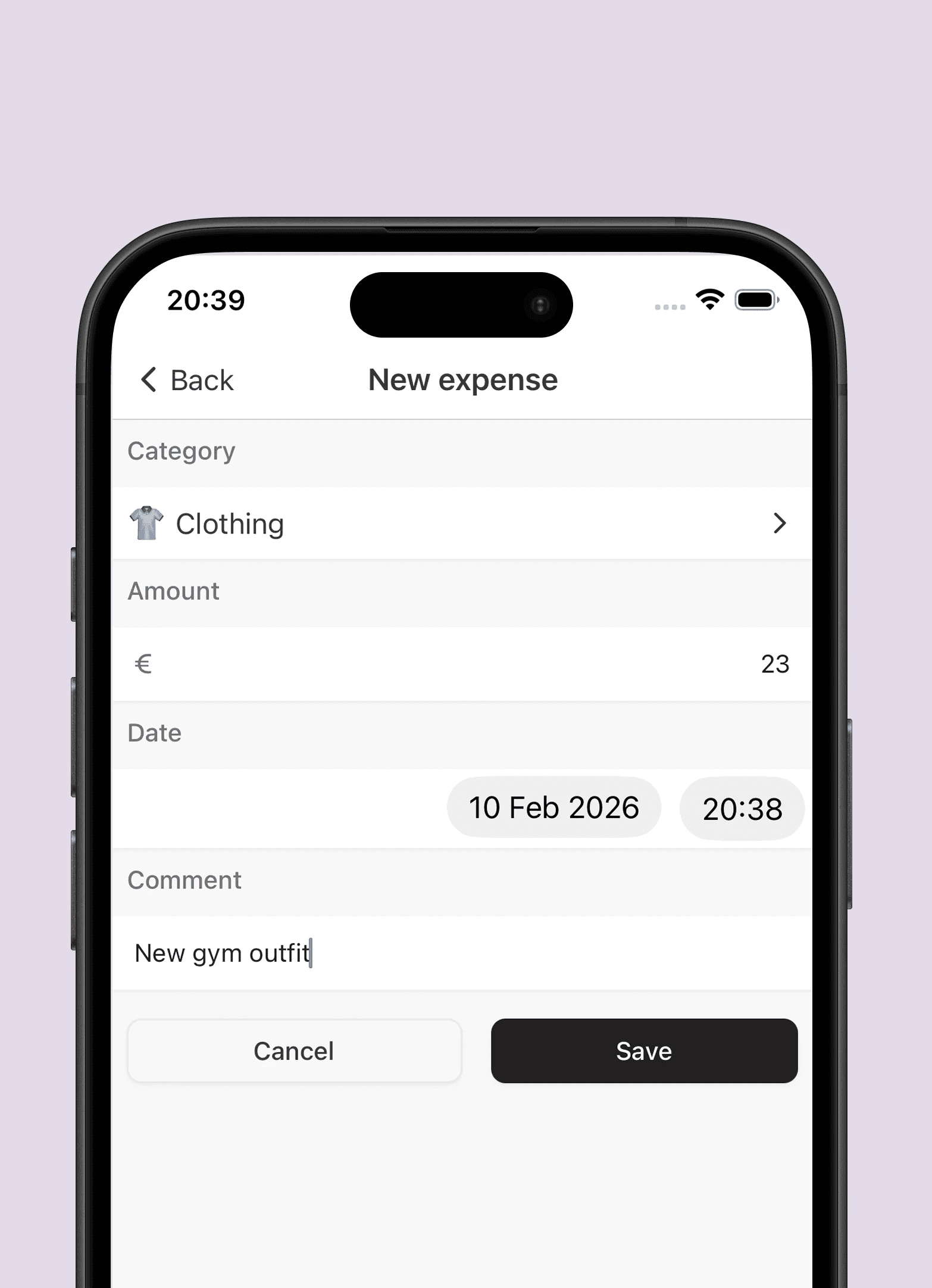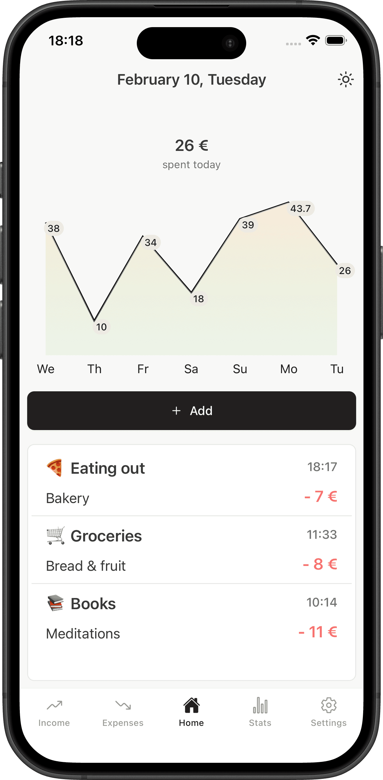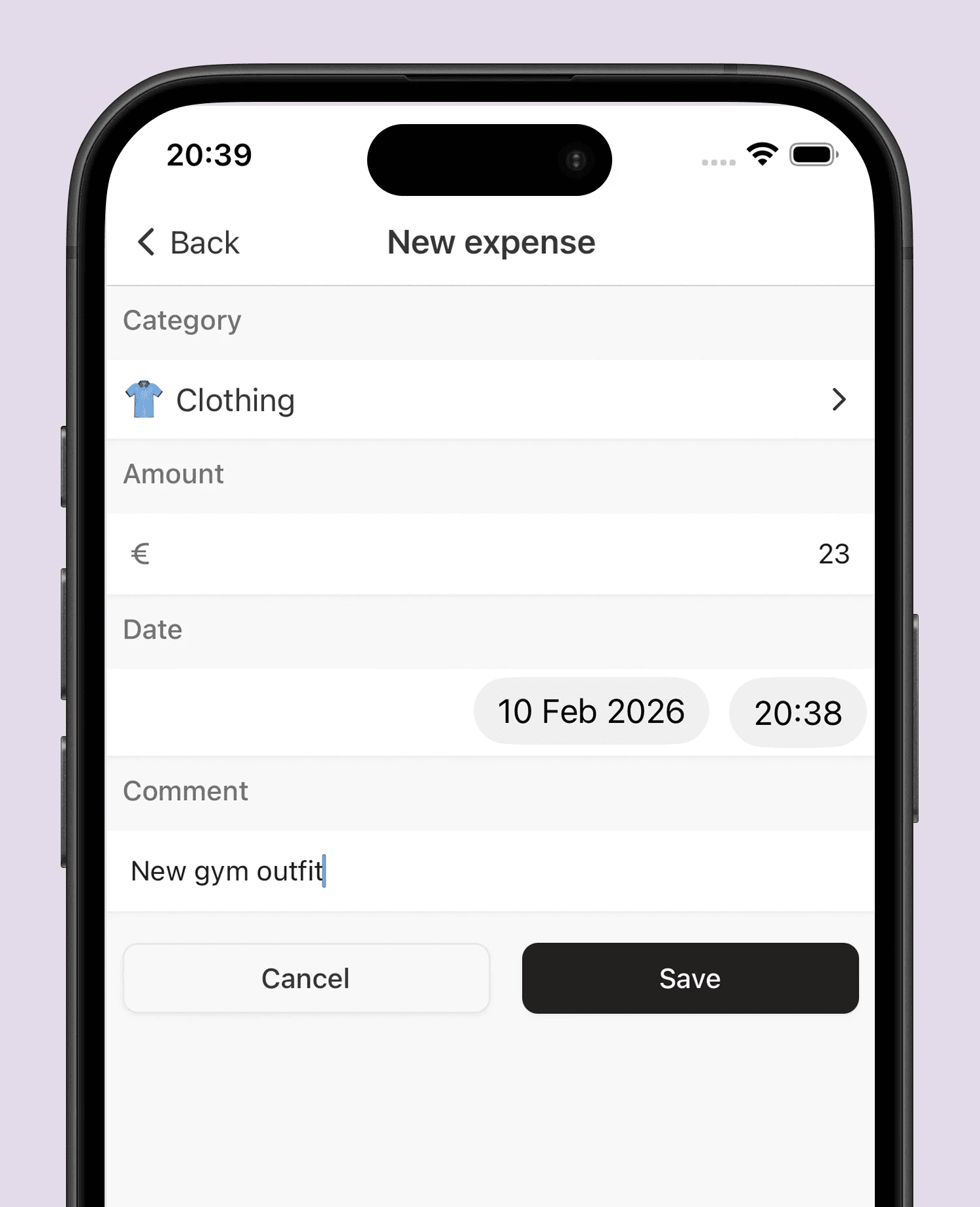 Simply enter amount + category. Add a note if you want